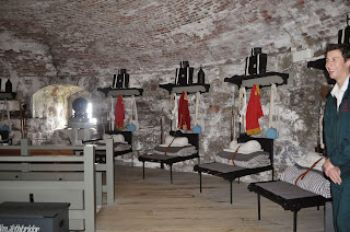 Once again breakfast came from the McDonalds inside the Wal-Mart, but this time I didn’t have to order it in French! We found a place to park downtown, and walked to the legislature where Rhonda and the girls had a tour while Salty and I waited outside, then walked along the riverfront back to the RV and drove south to St. John. Our first stop there was the famous Reversing Falls on the St. John River – the tide was low, so the river was flowing in the expected direction, i.e. downstream. We then toured a Martello tower (we had noticed several in Kingston), which is a type of fort that the British copied from the Spaniards and was very resistant to cannon fire. We then walked to an indoor farmers market where we bought some fresh food and had some lunch. We walked up the street a couple of blocks to any early loyalist house that Rhonda and the girls had a tour of, while I walked back to the RV to bring it closer to the area. It was at that point that things started to go wrong. I turned to sharply to get out of a parking spot on the roadside, and hit a telephone pole with the back of the vehicle, breaking the back support to the canopy on the RV. I got it secured as the others left the loyalist house, and we returned to the Reversing Falls. The tide was now rising rapidly, and was surging through a narrow gap between two rock faces, such that the “waterfall” had actually reversed, with the river appearing to flow upstream. We then headed east towards the Bay of Fundy, but before we got too far we blew an inside tire, completely ripping it to shreds and leaving scraps all over the highway. Rhonda called our insurance company, who arranged for a tow truck guy to come out and assess the situation. He figured the tire could be replaced on-site, but the local tire shop in St. John didn’t have the right one in stock. Still, he came out and put the spare on for us, and gave us directions to a shop in Moncton that should be able to help us. After 2-3 hours on the side of the road (during which time we made dinner), we were on the road again but got to Fundy National Park very late.